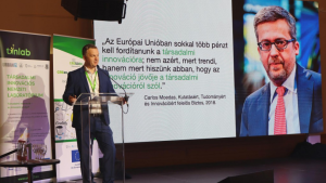The National Laboratory for Social Innovation (TINLAB) was also presented at the Professional Day. First of all, project manager Ákos Pozsonyi, representing the ELTE Innovation Centre, which is leading the consortium, presented the mission of TINLAB, the R&D focus areas (social impacts of digitalisation; social innovations improving quality of life; social innovation methodologies; culture, competence and human capital) and the results achieved so far, as well as further activities within the National Competence Centres for Social Innovation project. Szabolcs Hollósi, President of the consortium partner HÁRFA (Network for Regional Development Foundation), also highlighted the wide range of TINLAB's activities. Szabolcs Hollósi spoke about the concept of "City as a lab", which provides an opportunity for small-scale testing of experimental developments. The HÁRFA-led programme also includes the SIXAGON partnership project "Be a Number Queen!", which is currently being piloted in Debrecen.